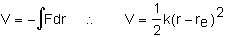 A representação gráfica de V em função de r é portanto uma parábola, com vértice V = 0, isto é, quando a distância é a de equilíbrio entre os átomos, como pode ser visto na FIGURA 2.