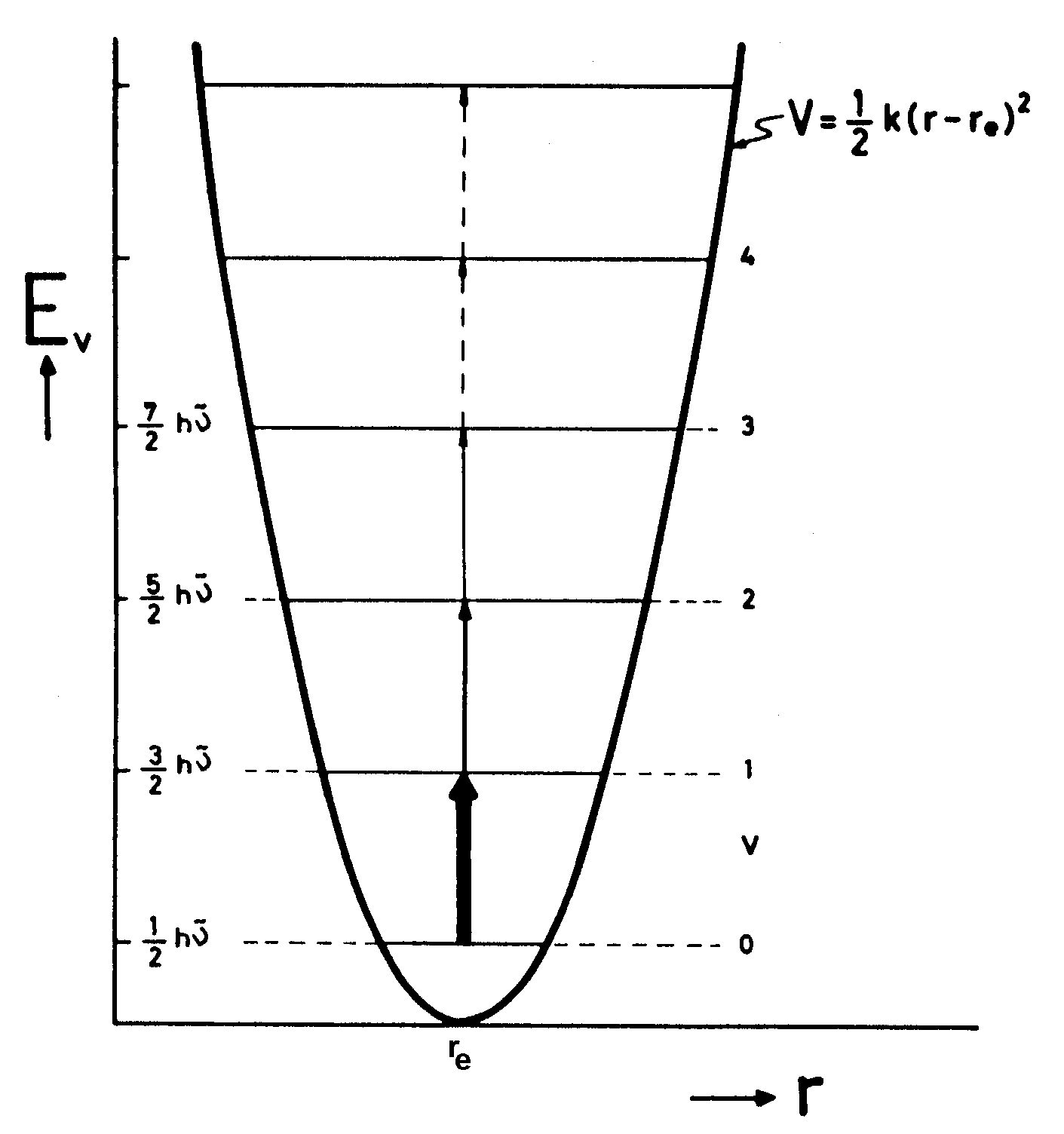 Uma molécula diatômica pode considerar-se aproximadamente como um oscilador harmônico, cujos átomos efetuam vibrações periódicas com uma freqüência ou número de onda dado pela equação: